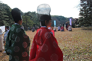 親射手2名を含めた12名が前弓・後弓に分かれ、親射手2名の各3手の奉射を終えてから、