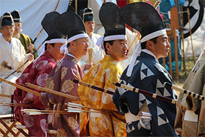 10人の射手が10手(20射)ずつ、計百手を射ることから百々手式と言います。