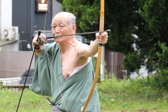 弓馬術礼法小笠原流の歩射として鎌倉時代以来受け継がれてきた弓術と射礼を学び、